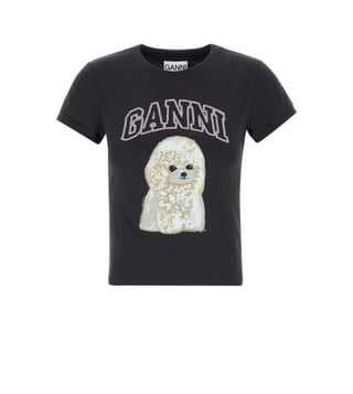 Ganni Grey Poodle Organic Cotton T-Shirt
