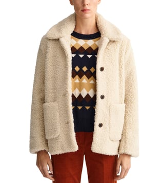 Designed in a classy shirt-jacket hybrid silhouette, this winterwear jacket is crafted in a fine fabric with a faux shearling quality. One that you will reach for time and time again, it is fully lined with a flattering fit, patch pockets, and imitation horn buttons.