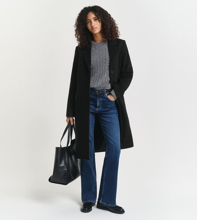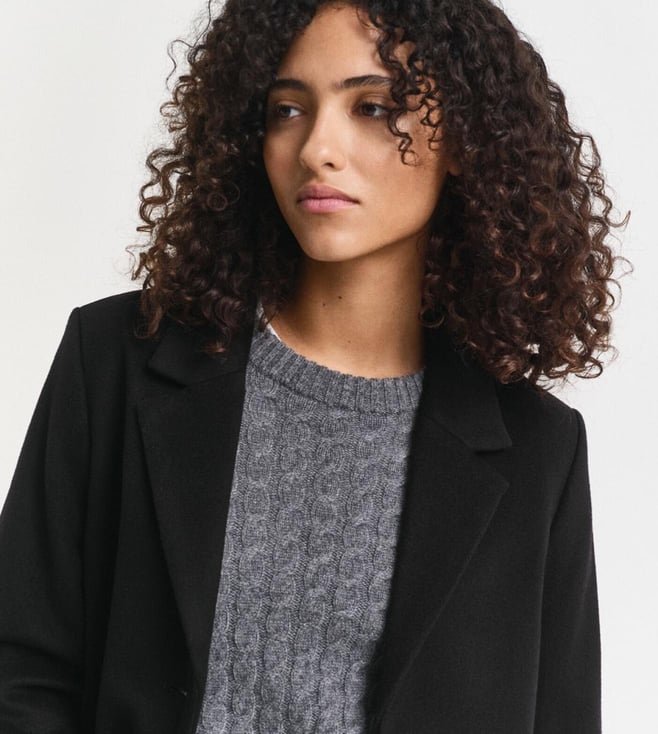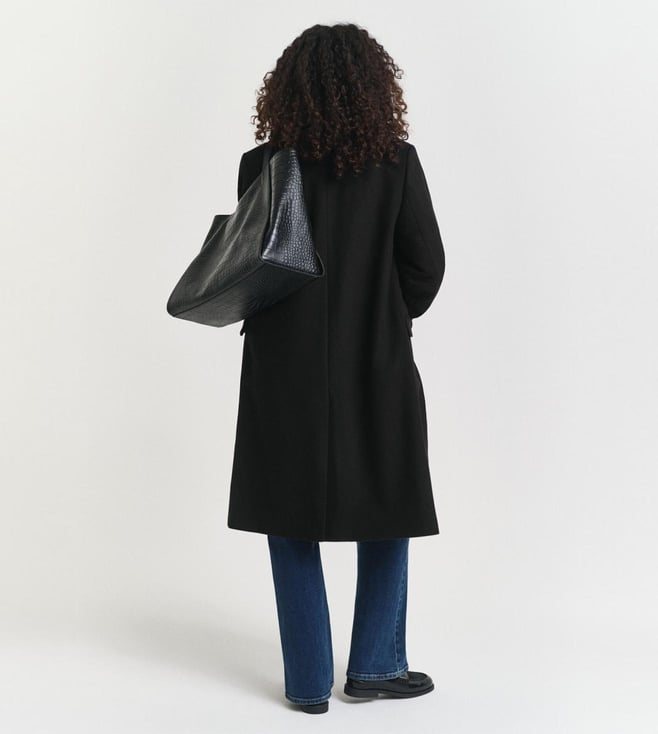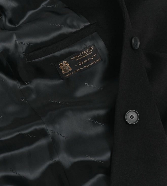 Gant Black Regular Fit Solid Long Sleeves Overcoat