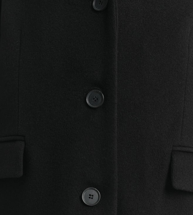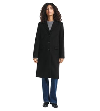 Clean lines and a button-down front give this coat a sharp classic look. Made with a wool polyamide and cashmere fabric blend it feels warm yet refined. The collared design with full sleeves keeps it practical for cold days. Solid black shade stays in trend making it a versatile layer for work or evenings out.