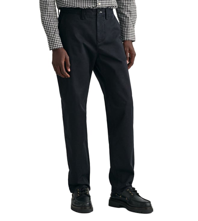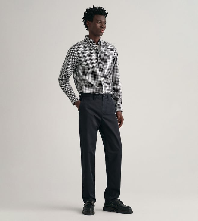 Elevate your wardrobe with our black twill chinos designed for the modern man. These regular fit chinos offer a sleek silhouette with a solid pattern that effortlessly complements any outfit. Crafted from a premium cotton blend fabric they ensure comfort and durability for all-day wear. The mid-rise design provides a classic look while the button and zip closure ensures a secure fit. Perfect for both casual and formal occasions these chinos are a versatile addition to your fashion arsenal.