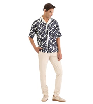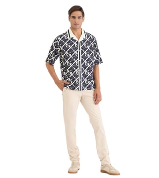 Dive into effortless style with this striking blue shirt, designed for the modern man. Crafted from 100% viscose, it offers a luxurious feel and breathability. The regular fit ensures comfort without compromising on elegance, while the short sleeves add a touch of casual flair. A classic shirt collar frames the face, and the printed pattern injects personality into any ensemble. The button closure provides a polished finish, making it perfect for both laid-back gatherings and sophisticated outings.