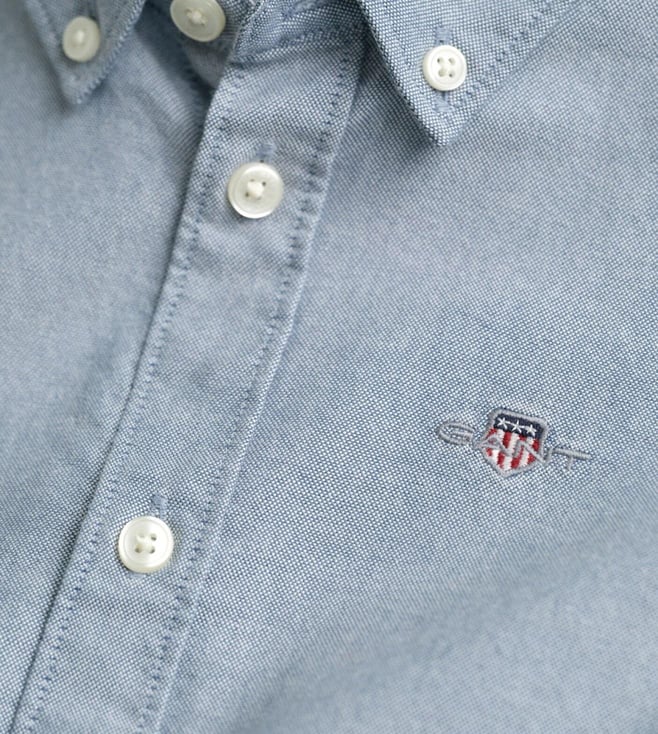 Discover the perfect blend of style and comfort with our Shield Oxford Shirt for boys. Crafted from premium organic cotton, this blue shirt offers a soft touch and breathability for all-day wear. The regular fit ensures a classic silhouette, while the solid pattern adds a timeless appeal. Featuring full sleeves and a button-down design, it's ideal for both casual and formal occasions. The button closure provides ease of wear, making it a versatile addition to any young wardrobe. Elevate your child's style effortlessly.
