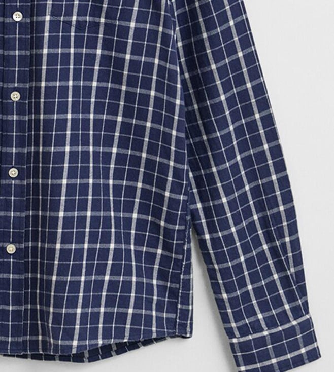 Discover the perfect blend of style and comfort with our boys' blue flannel shirt. Crafted from pure cotton, this shirt offers a soft touch and breathable wear, ideal for any season. The regular fit ensures ease of movement, while the classic windowpane check pattern adds a touch of timeless charm. Featuring full sleeves and a button-down design, it's perfect for both casual outings and special occasions. The button closure provides a secure fit, making it a versatile addition to any young wardrobe.