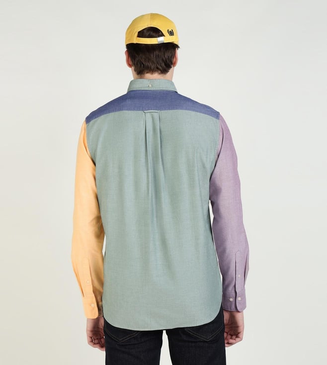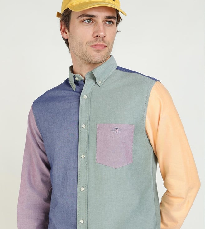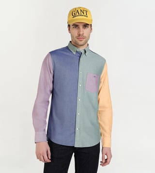 Elevate your wardrobe with the GANT Men Blue Cotton woven Colour Block shirt. This stylish shirt features a modern button-down collar and long sleeves, perfect for any occasion. The regular fit offers comfort and versatility, while the eye-catching colour block design adds a unique touch to your look. Made from high-quality cotton. This shirt is both breathable and durable. Upgrade your style effortlessly with this must-have addition to your closet.