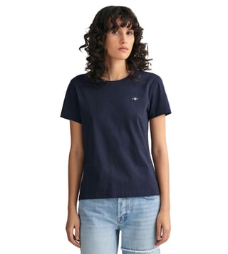 Introducing our stretchable shield t-shirt in a stunning blue color, designed for women who value comfort and style. This regular fit tee features a solid pattern and half sleeves, making it a versatile addition to any wardrobe. The crew neck design offers a classic look, while the pure cotton fabric ensures breathability and softness against your skin. With a convenient pull-on closure, this t-shirt is easy to wear and perfect for everyday activities. Whether you're running errands or relaxing at home, this t-shirt provides the perfect blend of comfort and fashion.