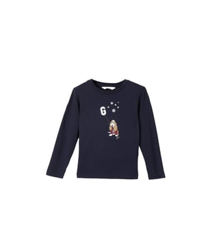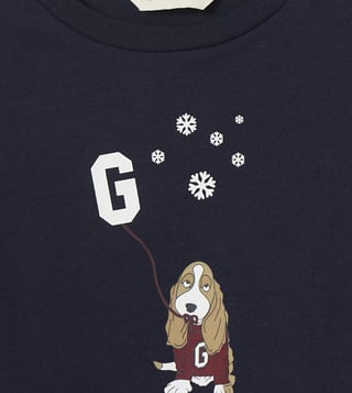 Your charming son will surely love to wear this trendy GANT T-shirt. Beautified with a cool dog-snowflake graphic, it features a round neckline and full sleeves. Fashioned from soft fabric, it also assures ultimate wearing comfort. Team it with a pair of washed jeans and high-ankle sneakers to lend him a smart look.