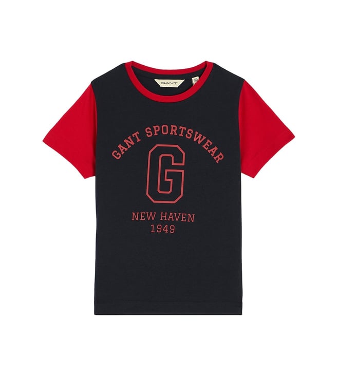 GANT Boys Navy Crew Neck Short Sleeve Printed T-Shirt