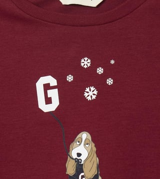 Your son will look like a little charmer when he hit the streets wearing this trendy GANT T-shirt. This solid T-shirt is beautified with a striking dog-snowflake graphic for an edgy look. Made of fine fabric, it will keep your son relaxed all day long. Team it with a pair of jeans to elevate his style quotient.
