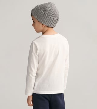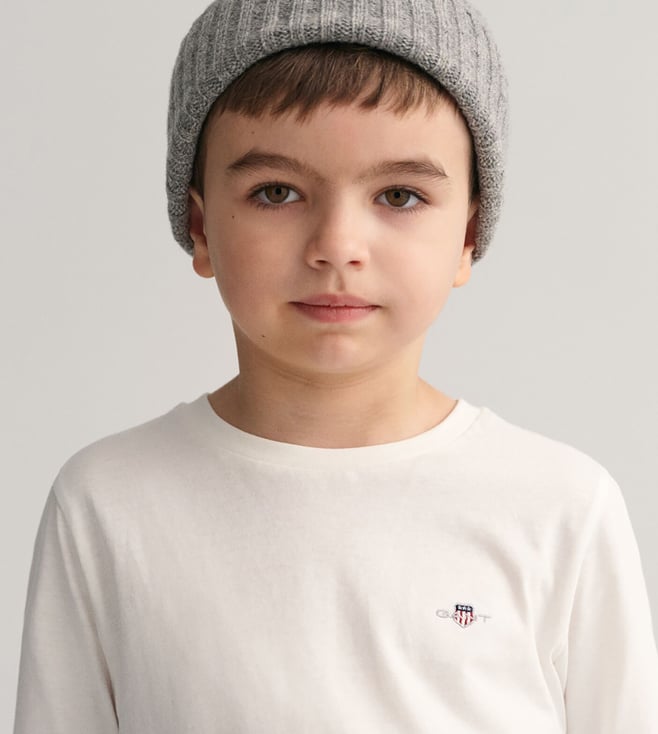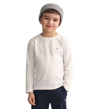 Introducing our Shield T-Shirt for boys, a perfect blend of style and comfort. Crafted from pure cotton, this white tee offers a soft touch and breathability, ideal for everyday wear. The regular fit ensures ease of movement, while the solid pattern adds a classic touch. Featuring full sleeves and a round neck, it provides a versatile look suitable for any occasion. The pull-on closure makes dressing hassle-free. Whether for school or play, this t-shirt is a wardrobe essential for your young one.