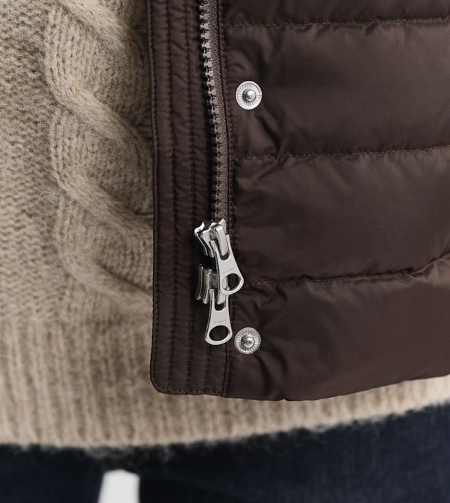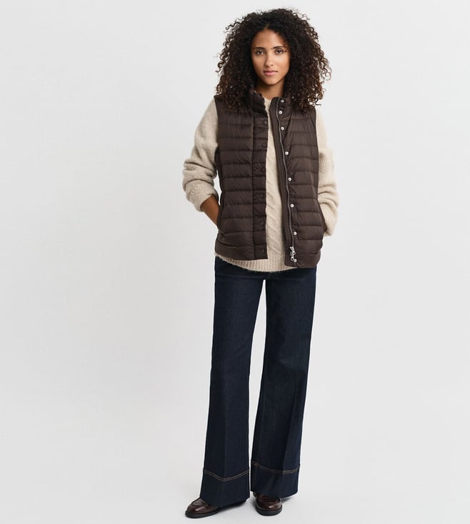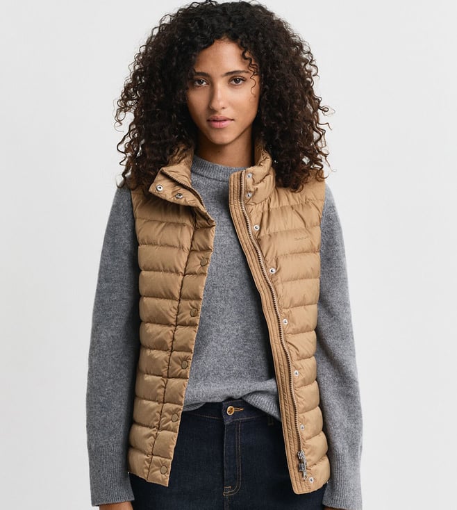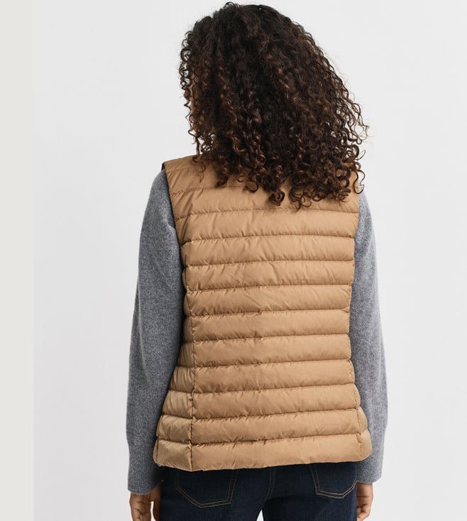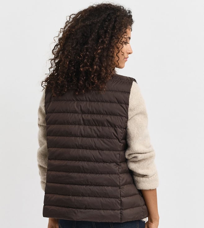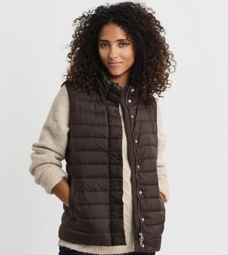 Discover the perfect blend of style and comfort with our light down vest for women. Crafted in a rich brown hue, this vest features a regular fit and a sleek solid pattern, making it a versatile addition to any wardrobe. The sleeveless design and stand collar offer a modern touch, while the durable polyester fabric ensures long-lasting wear. Equipped with a convenient zipper closure, this vest is ideal for layering during transitional weather. Whether you're heading out for a casual day or an outdoor adventure, this vest provides warmth without compromising on style.