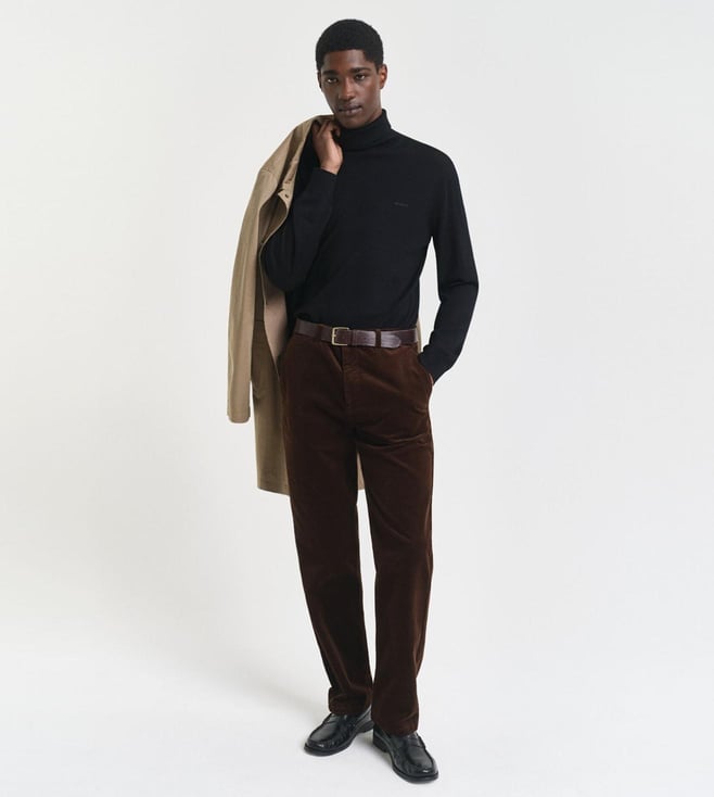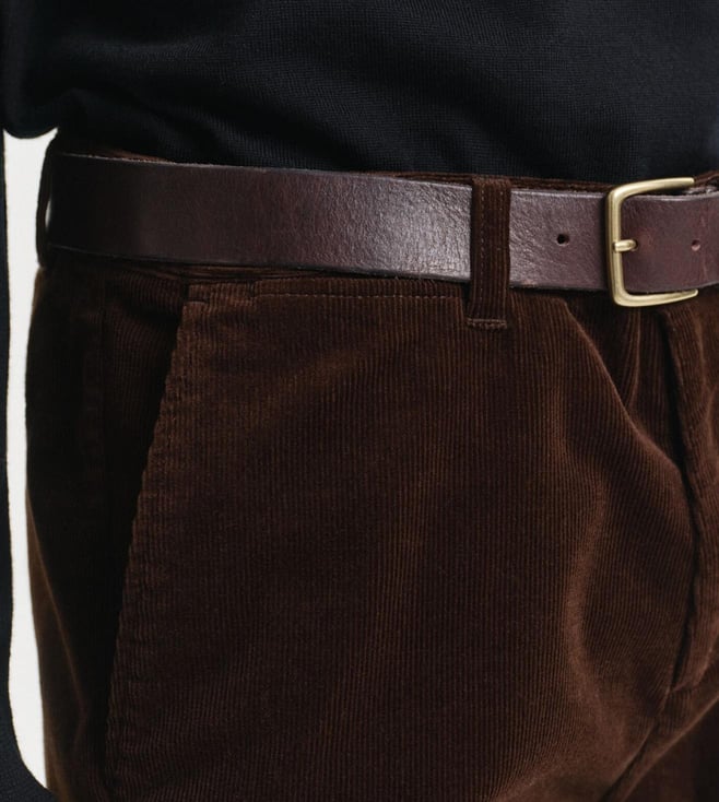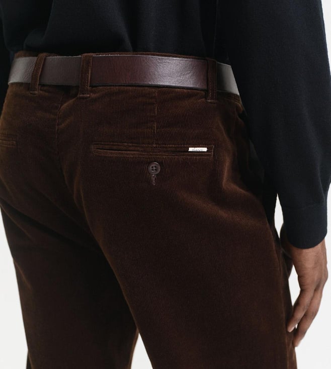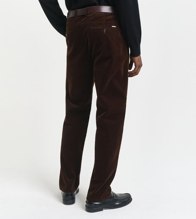 Discover the perfect blend of style and comfort with our cord chinos trousers for men. Crafted from a premium cotton blend fabric, these trousers offer a soft feel and durable wear. The rich brown color adds a versatile touch to your wardrobe, easily pairing with various tops. Designed with a regular fit, they provide a classic silhouette that suits any occasion. The mid-rise waist ensures a comfortable fit, while the button closure adds a touch of sophistication. Ideal for both casual and formal settings, these solid pattern chinos are a must-have for the modern man.