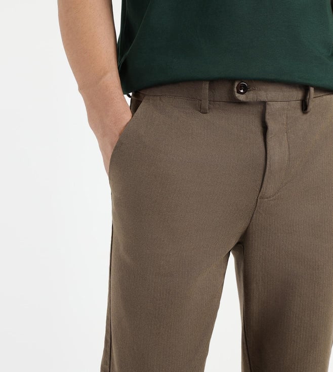 This GANT Men Brown Cotton woven Chinos Trouser crafted from high-quality cotton.This slim-fit chinos offer both comfort and style. The mid-rise design and solid button detail provide a modern twist on a classic wardrobe essential. Perfect for any occasion.This versatile trousers will effortlessly take you from work to weekend. Upgrade your wardrobe with these timeless chinos that will keep you looking sharp and feeling confident all day long.
