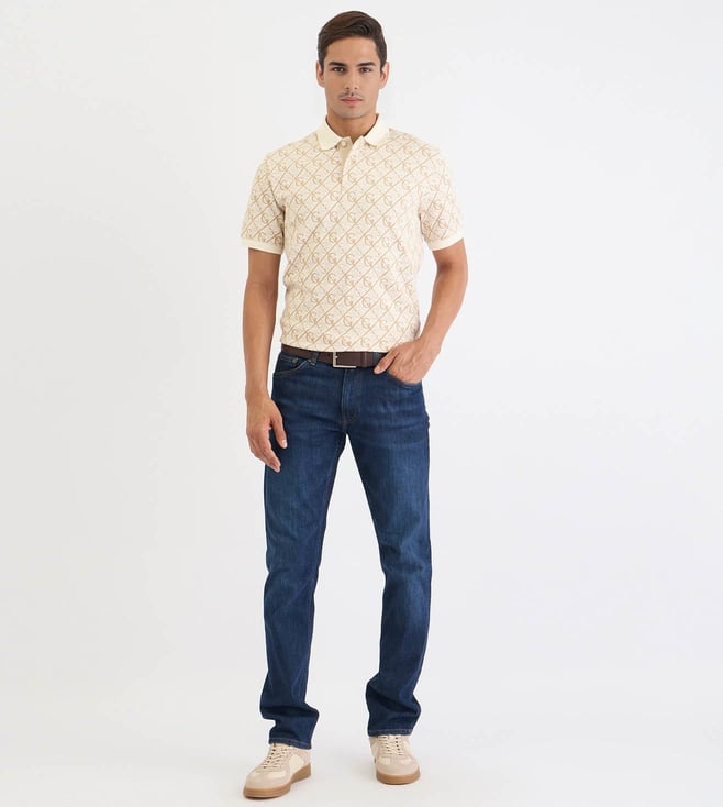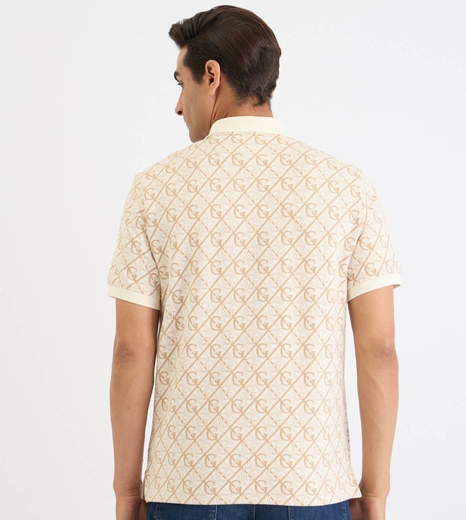 Elevate your casual wardrobe with this cream-colored polo t-shirt, a perfect blend of style and comfort. Crafted from 100% premium cotton, it offers a soft touch and breathability for all-day wear. The regular fit ensures a flattering silhouette, while the short sleeves and classic polo collar add a timeless appeal. The printed pattern infuses a modern twist, making it versatile for any occasion. Whether paired with jeans or chinos, this polo t-shirt is a must-have staple for the contemporary man.