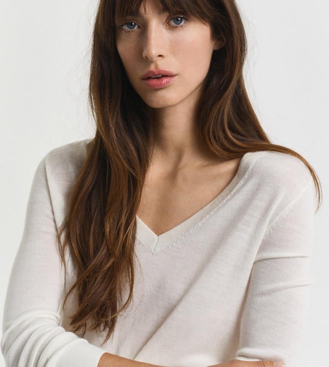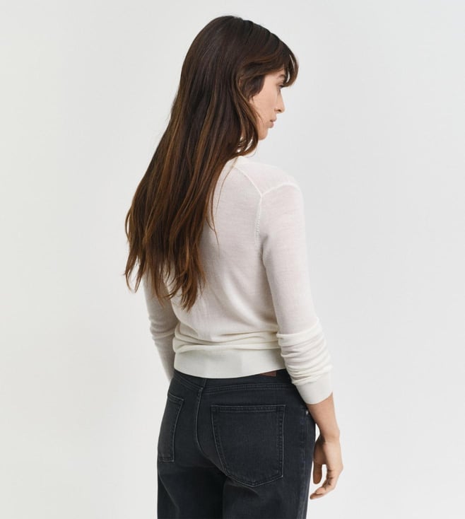 Gant Cream Regular Fit Solid Long Sleeves Sweater