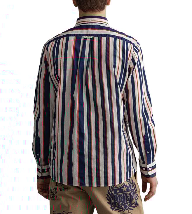 Made with great attention to detail, this casual shirt is made of a washed cotton poplin stripe with contrasting details in solid oxford cloth. Tailored for a regular fit with a classic button-down collar, a single chest pocket and a shorter hemline, you will love wearing it untucked with jeans or chinos.