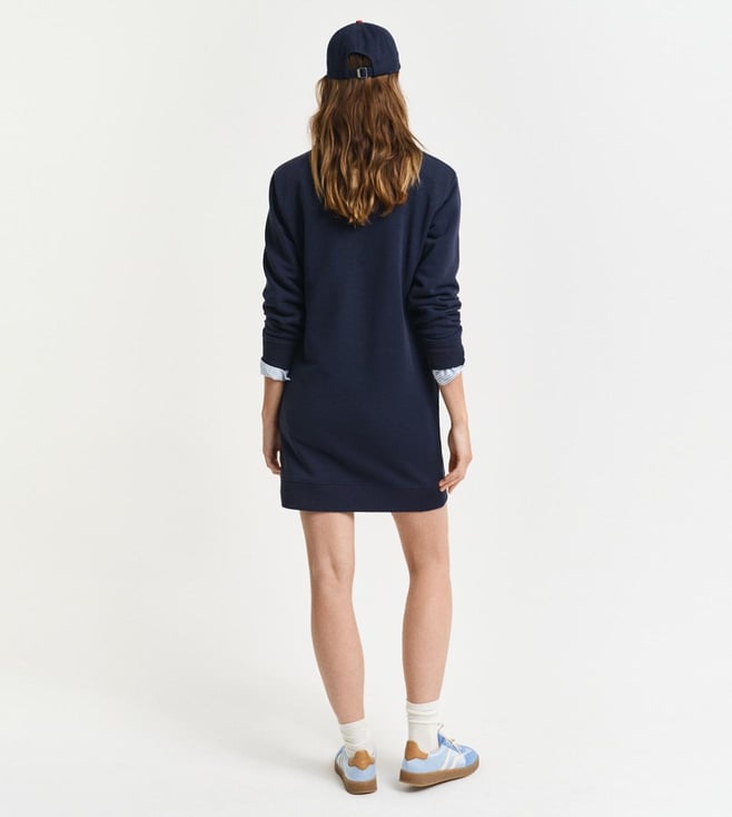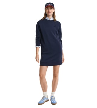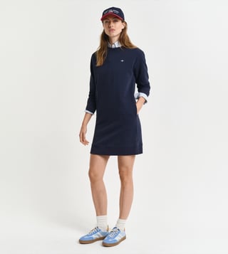 This GANT sweat dress offers sporty elegance in a classic blue shade. Featuring a crew neckline and long sleeves, it ensures everyday comfort while maintaining chic appeal. The pull-on style makes it easy to wear, while the solid pattern and shield logo elevate its design. Ideal for casual days or laid-back outings, this dress combines premium quality with effortless style.