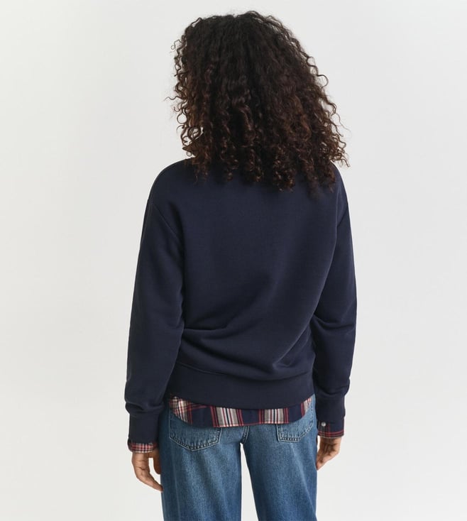 Gant Evening Blue Relaxed Fit Solid Long Sleeves Sweatshirt