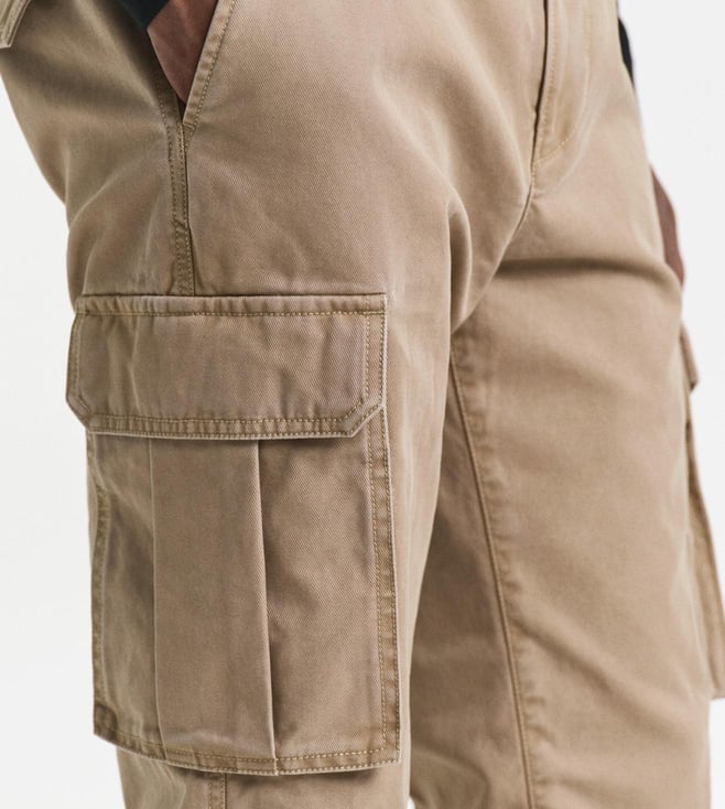 These mens cargo pants are made from 100% cotton fabric in solid beige. The straight fit follows the current trend. They come with button & zip closure for easy wear. Non-stretchable fabric keeps them strong & durable. Perfect for casual outings, outdoor activities and everyday use. Simple, practical & easy to pair with any top.