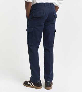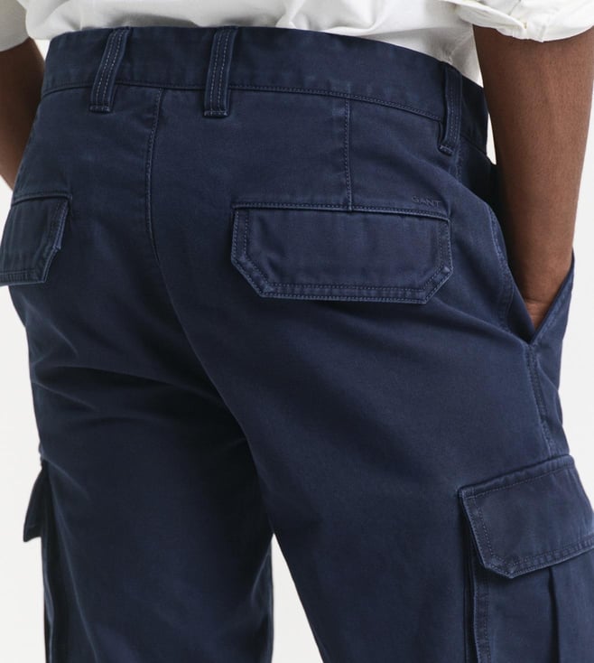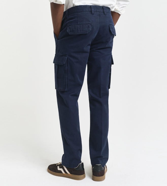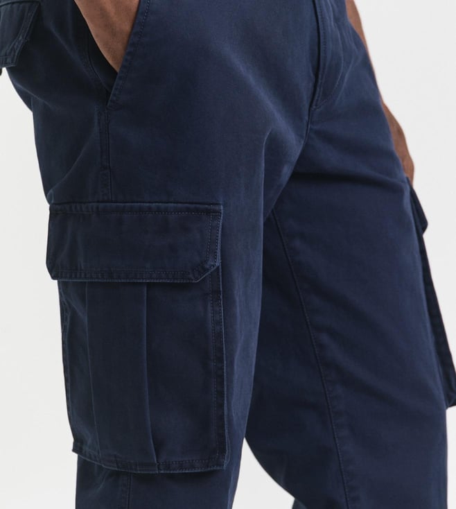 Add a fresh touch to your wardrobe with these mens cargo pants made from 100% cotton fabric. They come in straight fit with button & zip closure. Solid blue fabric keeps a simple on-trend look. Non-stretchable fabric makes them sturdy. Multiple pockets make them practical. Comfortable for daily wear & casual outings.