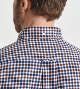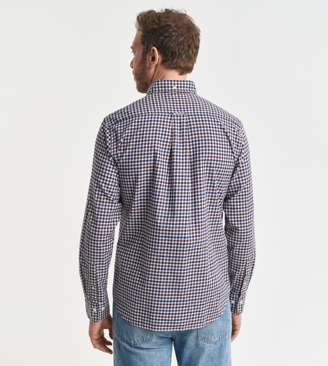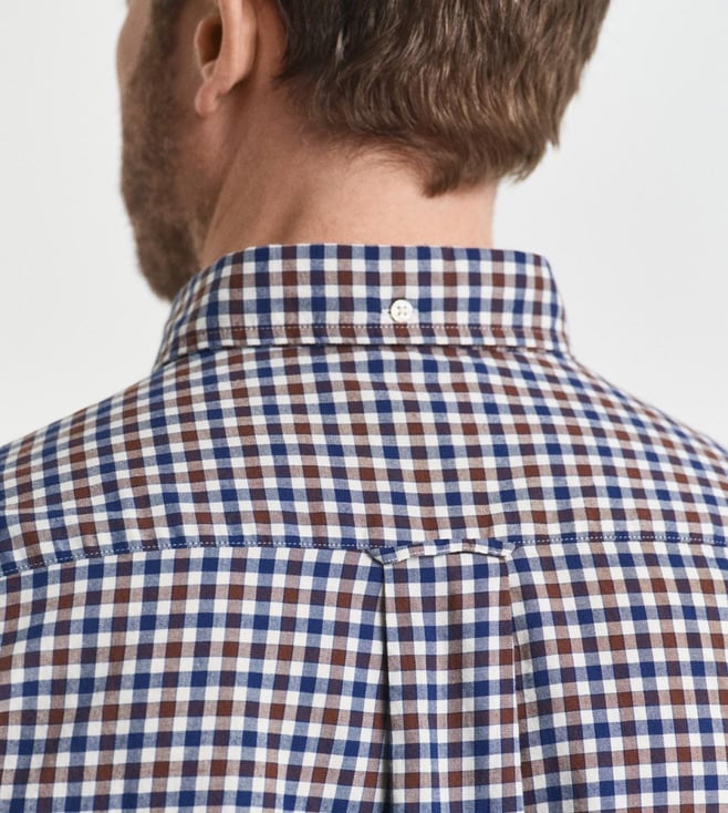 A true statement piece, this shirt by GANT will be a prized addition to your wardrobe. Designed for urban men, it is highlighted with Gingham check pattern for a versatile effect. The button-down collar and back pleats further add to its sophistication. Team this shirt with chinos or jeans for a smart-casual appeal.