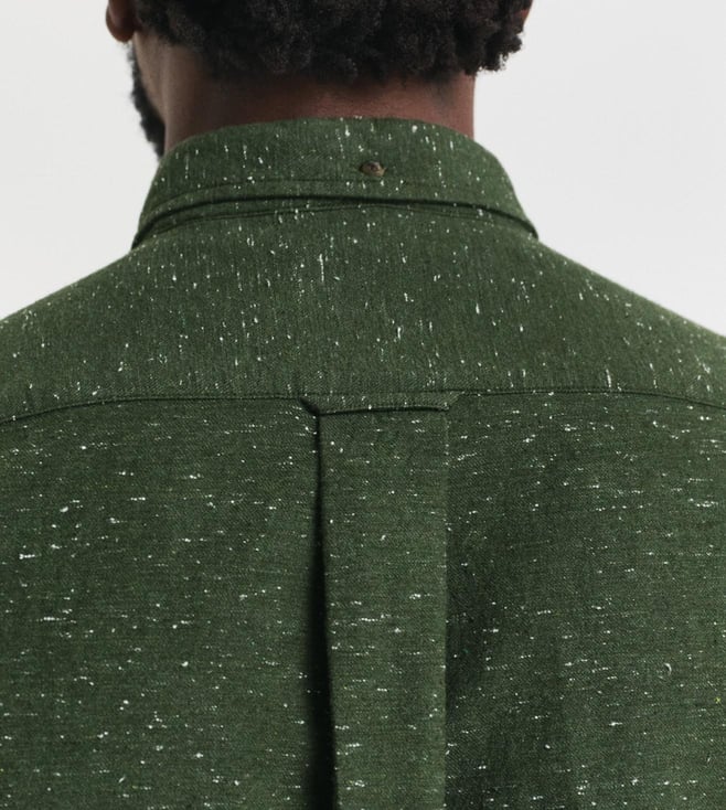 Expertly tailored, this green shirt by GANT is created for men who love to flaunt their sleeves in style. It features a striking all-over pattern for an edgy look. The button-down collar and back pleats further add more sophistication to it. Team this shirt with a pair of flat-front trousers and casual shoes.