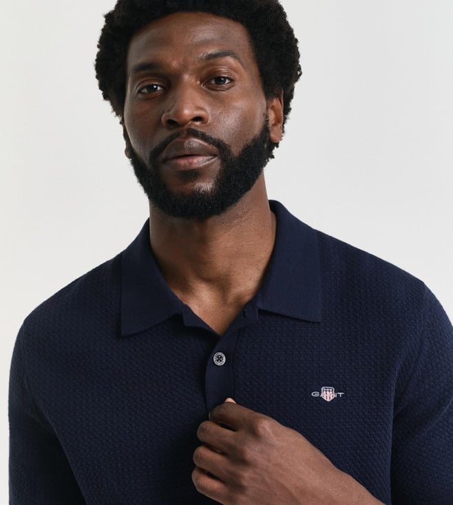 A true statement piece, this textured polo by GANT is created for men who appreciate standout fashion. Featuring a clean silhouette with a polo collar and 3-button placket, it is finished with logo detailing on the left chest. Pair it with chinos or jeans to take your style quotient to the next level.