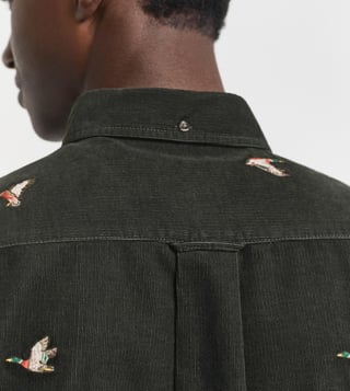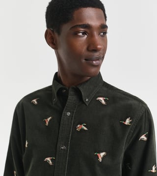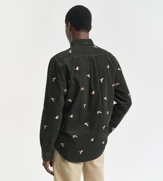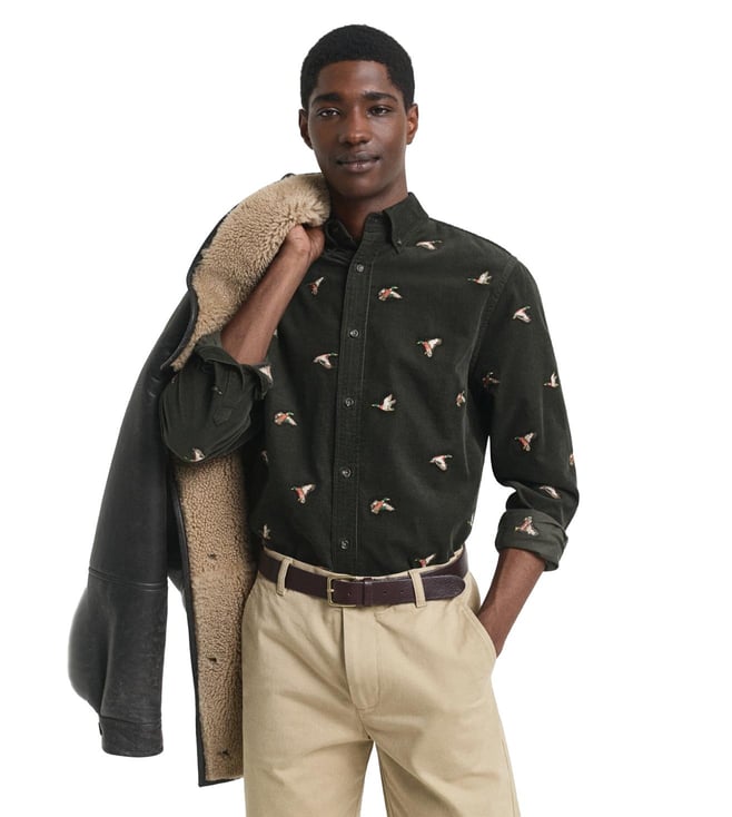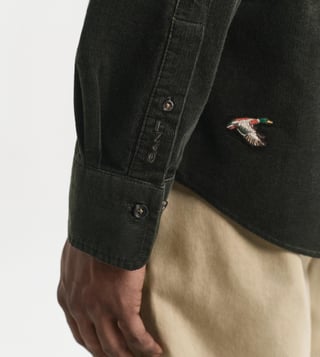 Fashion-forward men will surely love the design of this GANT shirt. Tailored to perfection, this corduroy shirt features embroidered bird motifs for added sophistication. Featuring a button-down collar and pleat-loop styling at the back, it looks extremely voguish. Team it with contrast-coloured chinos.