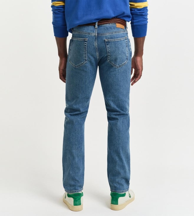 Gant Fashion Mid Blue Worn In Regular Fit Solid Mid Rise Jeans