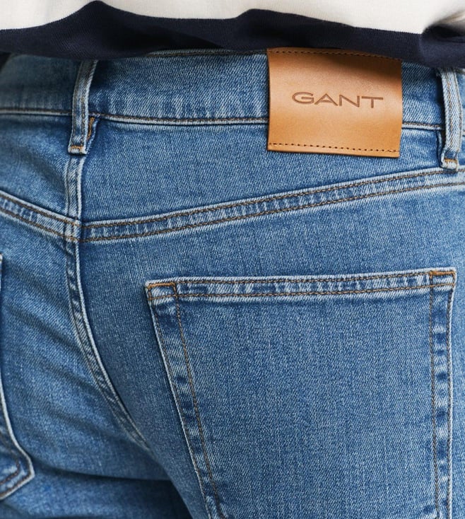 Gant Fashion Mid Blue Worn In Slim Fit Solid Mid Rise Jeans