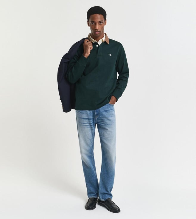 Discover the perfect blend of style and comfort with our Cord Heavy Rugger T-Shirt in a striking green color. Designed for men who appreciate quality, this regular fit shirt features a solid pattern that exudes timeless elegance. Crafted from pure cotton fabric, it ensures breathability and softness for all-day wear. The full sleeves and classic polo collar add a touch of sophistication, while the button closure offers a secure fit. Ideal for casual outings or relaxed office days, this t-shirt is a versatile wardrobe staple.