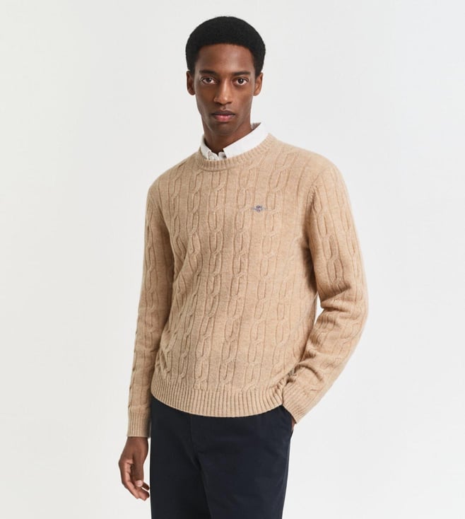 Discover timeless style with our khaki sweater, designed for the modern man. Crafted from luxurious lambswool, this sweater offers a regular fit that ensures comfort and ease of movement. The classic cable knit pattern adds a touch of sophistication, making it perfect for both casual and formal occasions. Featuring full sleeves and a crew neck, it provides warmth and style in equal measure. The convenient pull-on closure makes it easy to wear, while the rich khaki color complements any wardrobe. Elevate your look with this versatile essential.
