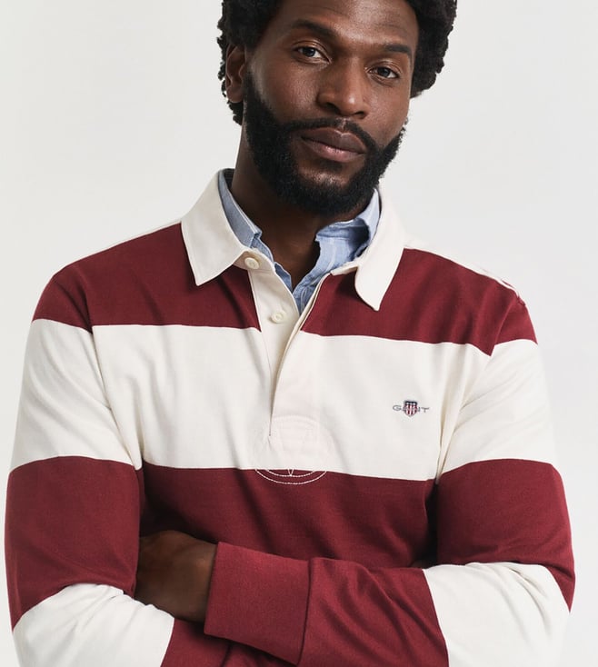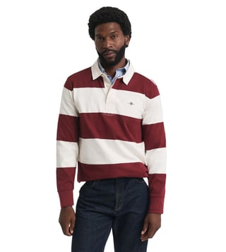 Introducing our heavy rugger polo t-shirt in a striking maroon color, designed for the modern man who values both style and comfort. This regular fit polo features a classic stripes pattern that adds a touch of sophistication to any casual outfit. Crafted from pure cotton fabric, it ensures breathability and softness, making it perfect for all-day wear. The full sleeves and polo neck offer a timeless look, while the button closure provides a secure fit. Ideal for any occasion, this polo t-shirt is a versatile addition to your wardrobe.
