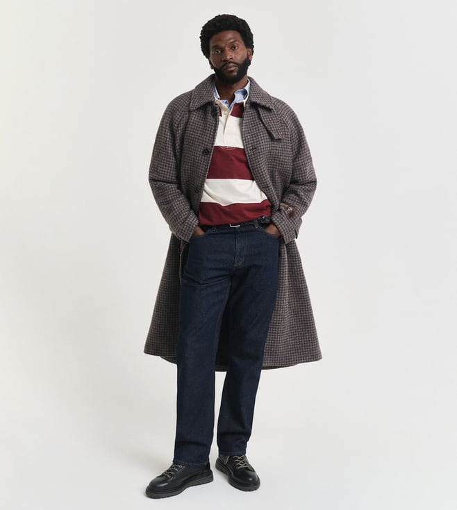 GANT Maroon Pure Cotton Regular Fit Striped Polo T-Shirt