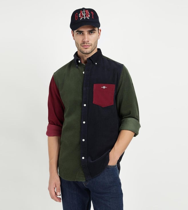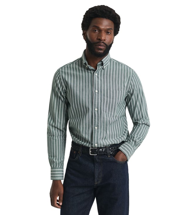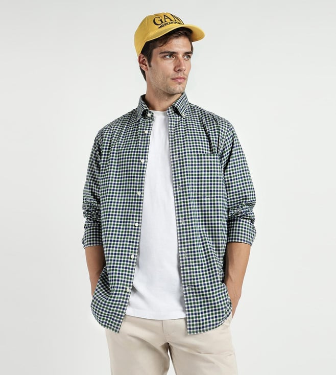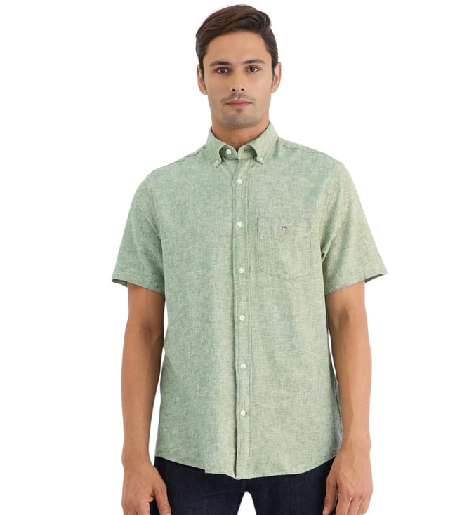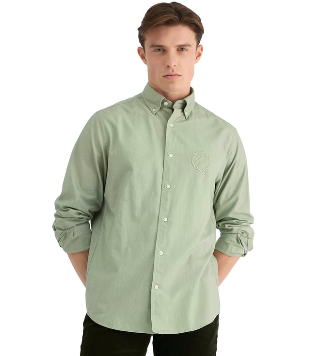 Mens Green Button Down Collar Full Sleeve Logo Shirt