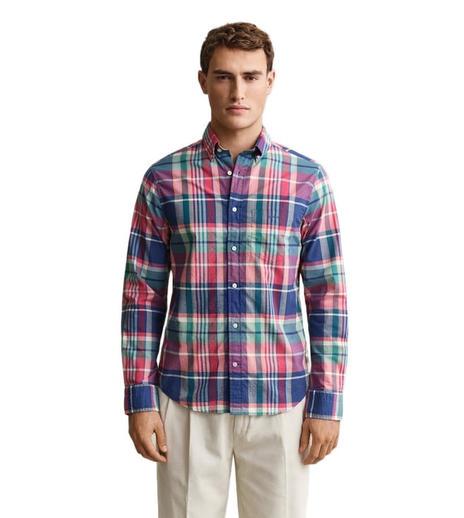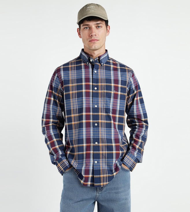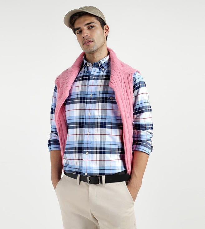 Mens Blue Button Down Collar Full Sleeve Plaid Checks Shirt