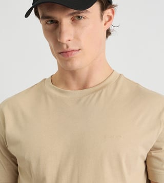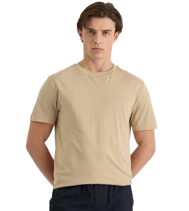 GANT Mens Beige Solid Crew Neck Short Sleeve T-Shirt