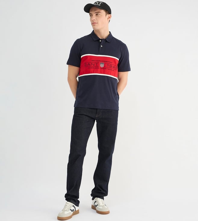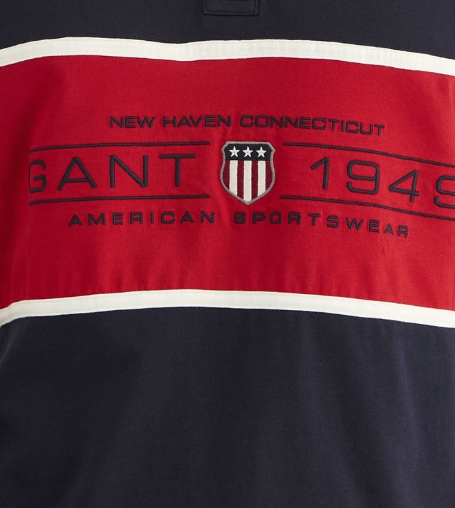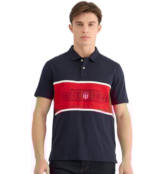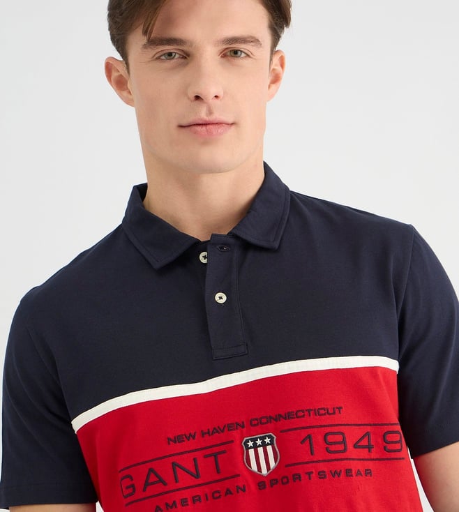 GANT Mens Blue Polo Collar Short Sleeve Colorblock T-Shirt