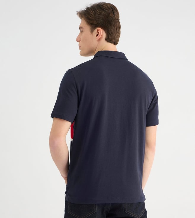 A classic with a twist. This blue polo features a bold colorblock design, crafted from pure cotton for ultimate comfort. The regular fit and short sleeves offer a relaxed yet polished look, while the polo collar and button closure add a touch of sophistication.