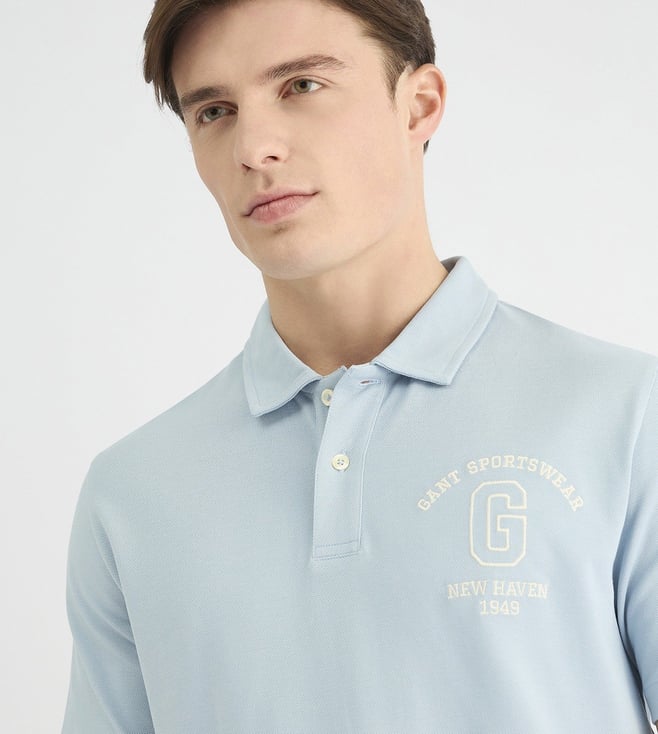 GANT Mens Blue Polo Collar Short Sleeve Embroidery T-Shirt