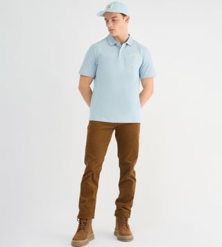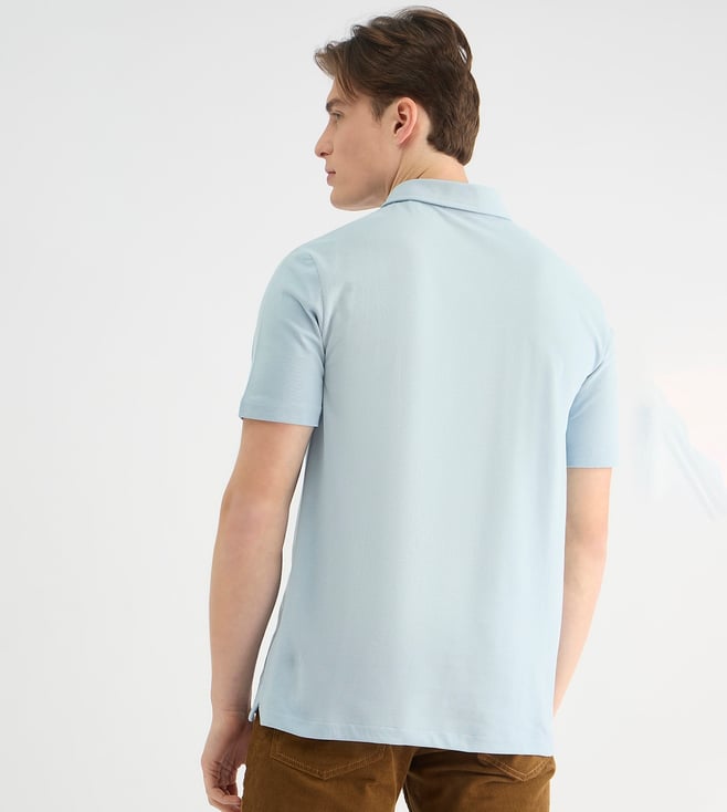 Classic comfort meets modern style in this breezy blue polo. Crafted from pure cotton, it features a timeless regular fit, short sleeves, and a button closure. Intricate embroidery adds a touch of sophistication, making it perfect for casual days or smart casual occasions.