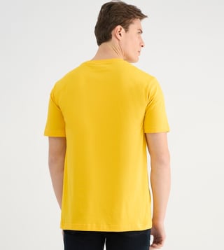 Sun-kissed comfort meets bold style. This vibrant yellow tee, crafted from pure cotton, features a captivating typography pattern that speaks volumes. Its regular fit and short sleeves offer effortless wear, while the round neck and pull-on closure ensure a classic, comfortable feel.