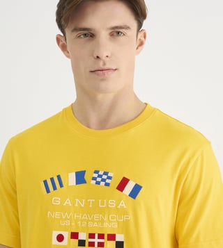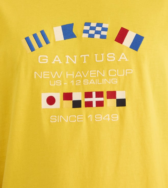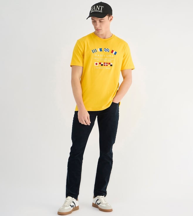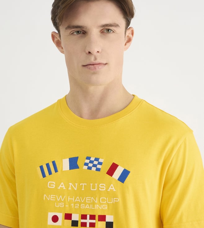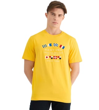 GANT Mens Yellow Round Neck Short Sleeve Typography T-Shirt