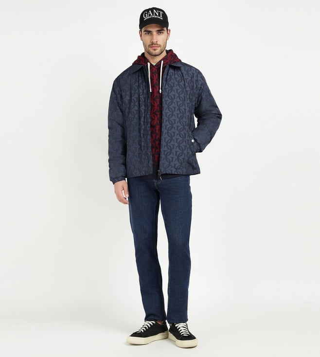 GANT Navy Blue Printed Regular Fit Jacket