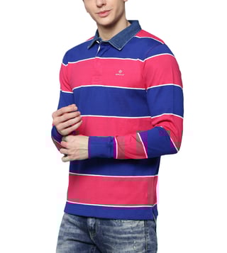 Gant Pink & Blue Striped Regular Fit Polo T-Shirt