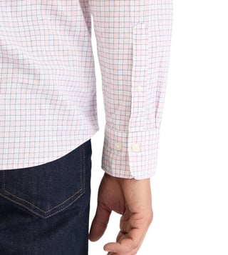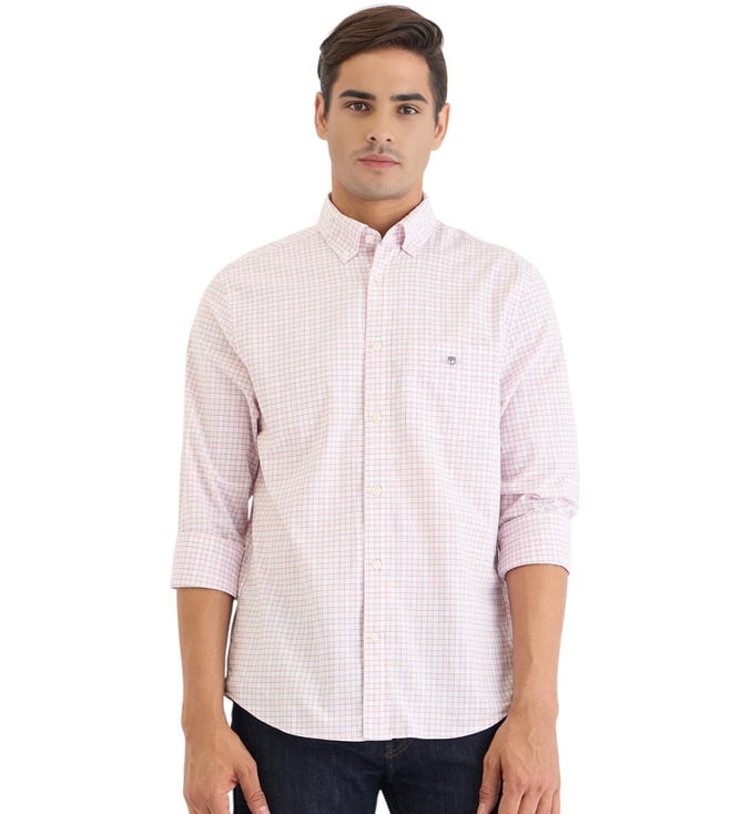 This vibrant pink checkered shirt is a perfect blend of classic style and modern flair. Crafted from 100% cotton, it offers a comfortable regular fit that drapes effortlessly. The long sleeves and traditional shirt collar add a touch of sophistication, making it versatile for both casual and semi-formal occasions. Its button-down closure ensures a neat finish, while the lively check pattern injects a playful yet polished vibe, making it an essential addition to any man's wardrobe.