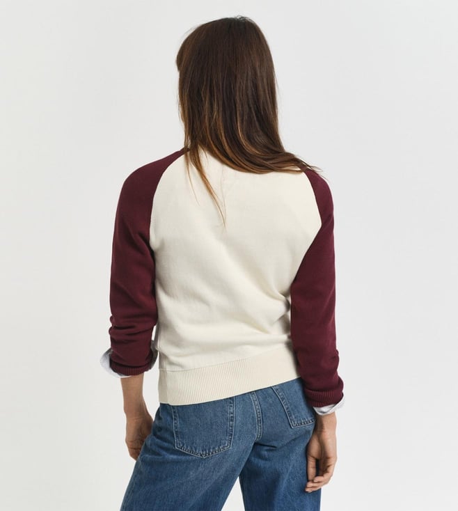 Gant Plum Wine Regular Fit Blocked Long Sleeves Sweater