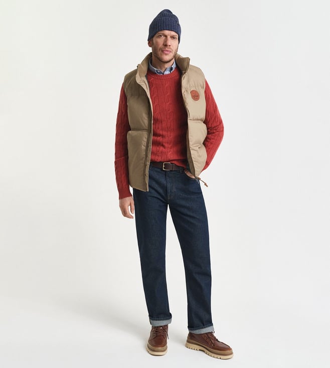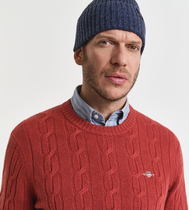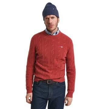 Discover timeless style and comfort with our lambswool pullover sweater, crafted for the modern man. This red sweater features a classic cable knit pattern that adds texture and sophistication to your wardrobe. Designed with a regular fit, it offers a relaxed yet polished look suitable for any occasion. The full sleeves and crew neck provide warmth and versatility, making it perfect for layering. Made from premium wool fabric, it ensures softness and durability. The convenient pull-on closure makes dressing effortless. Ideal for both casual and formal settings.
