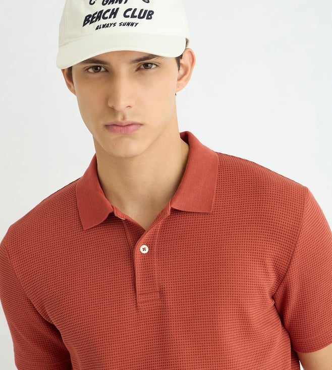 Elevate your casual wardrobe with our Red Waffle T-Shirt, designed for the modern man who values both style and comfort. This regular fit tee features a unique textured pattern that adds a touch of sophistication to your everyday look. Crafted from a premium polycotton blend, it ensures breathability and durability. The short sleeves and classic polo collar offer a timeless appeal, while the button closure provides a polished finish. Perfect for any occasion, this versatile piece is a must-have staple.