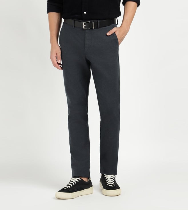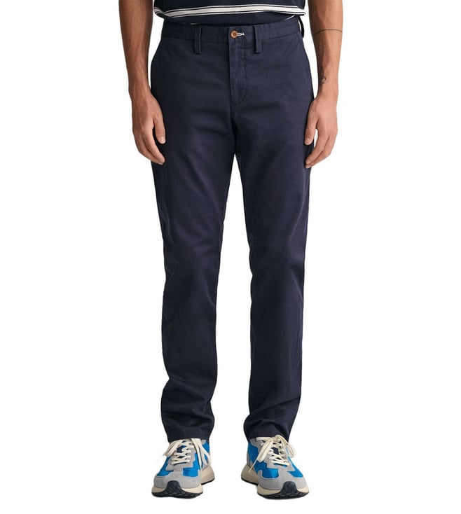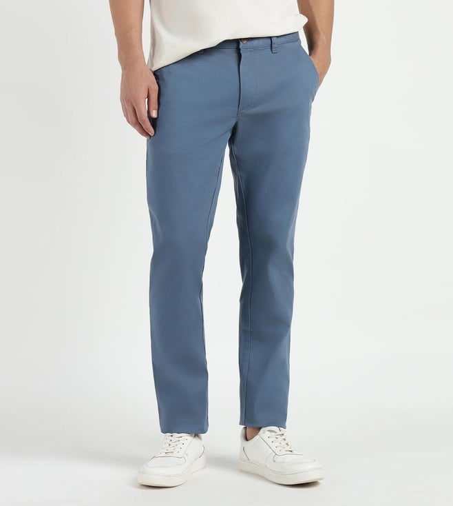 Evening Blue Preppy Chain Print Regular Fit Flat Front Trousers